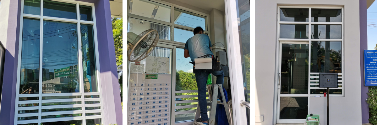 วันนี้ลูกค้าเก่ากลับมาใช้บริการอีกครั้งค่ะ นิติหมู่บ้านติดต่อมาให้ติดป้อมยาม อยากได้ฟิล์มเข้มๆกันร้อนได้ดีแต่ไม่ขอเอาความเข้มถึง 80% รอบที่แล้วติด 80% เข้มไปแต่กันร้อนได้ดีมากค่ะ รอบนี้เลยกลัวเข้มมากไป ขอเลือกติดตั้งเป็นฟิล์ม 3M รุ่น Ceramat เหมือนเดิมที่เคยติดไปค่ะ เลือกความเข้ม 60%