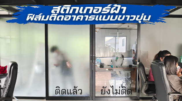 ร้าน X-six Film รับติดตั้งและจำหน่าย สติกเกอร์ฝ้า ฟิล์มติดอาคารแบบขาวขุ่น