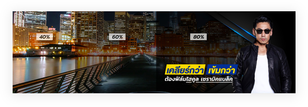 ฟิล์มไฮคูล เซรามิค แบล็คไนท์ เสริฟความเป็นส่วนตัวด้วยความดำนอก สว่างใน ยังให้ความเคลียร์ ชัด ด้วยความเข้ม 3 ระดับ คือ 40%, 60% และ 80%